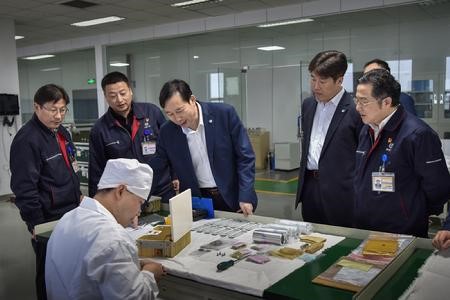 罗荣怀一行参观了公司展厅和科研生产现场,并与大满贯PG领导班子、部分中层干部开展了座谈。